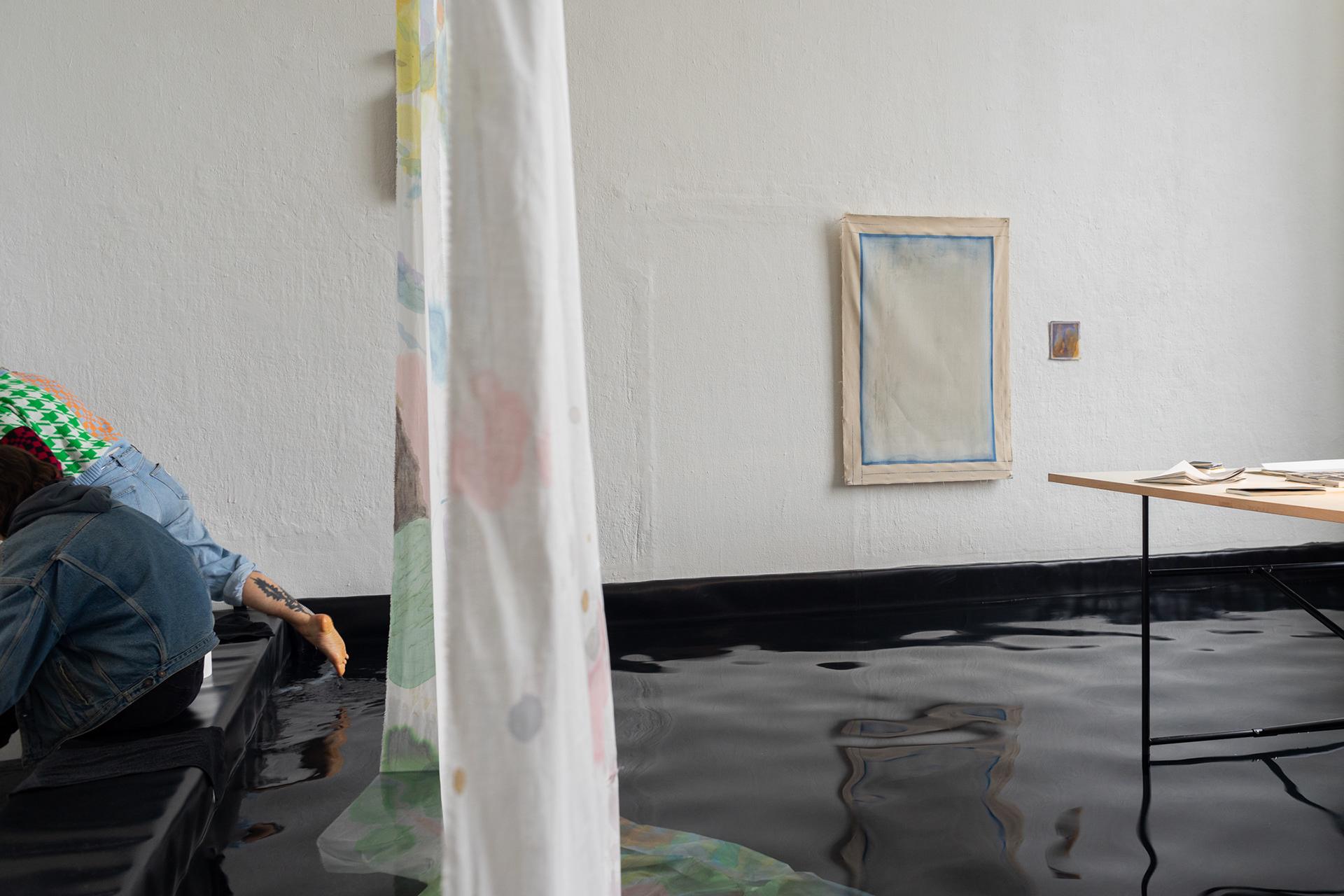 water, chlorine, wood, PVC foil, towels; dimensions variable