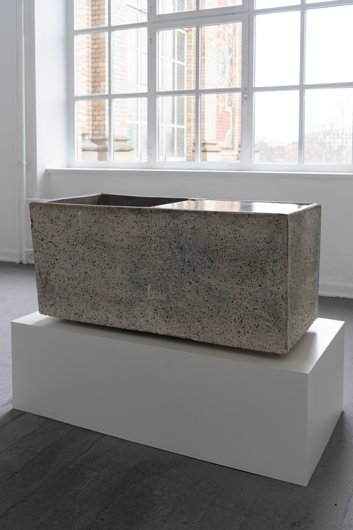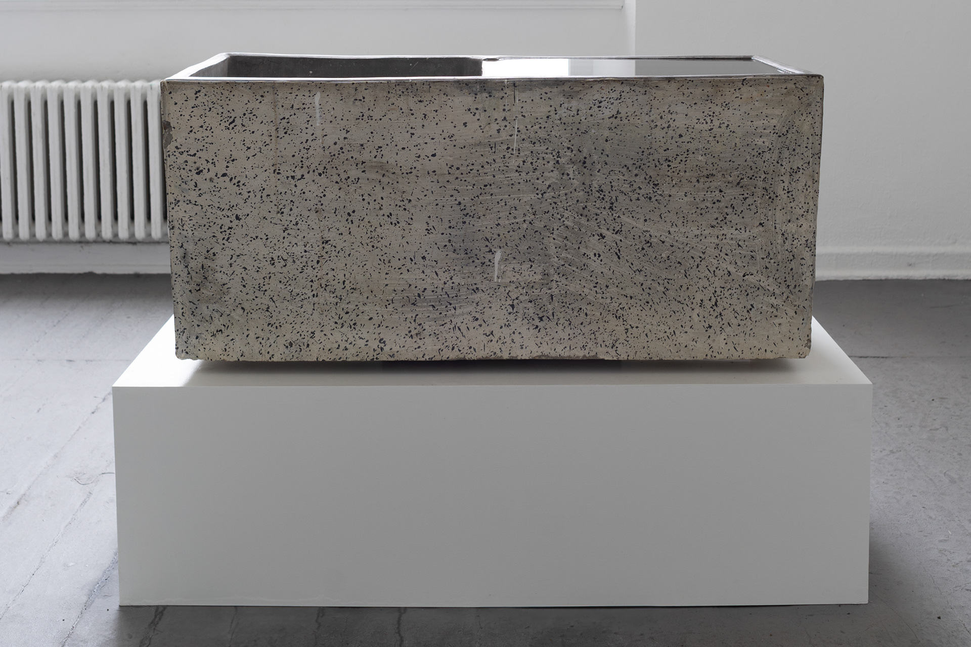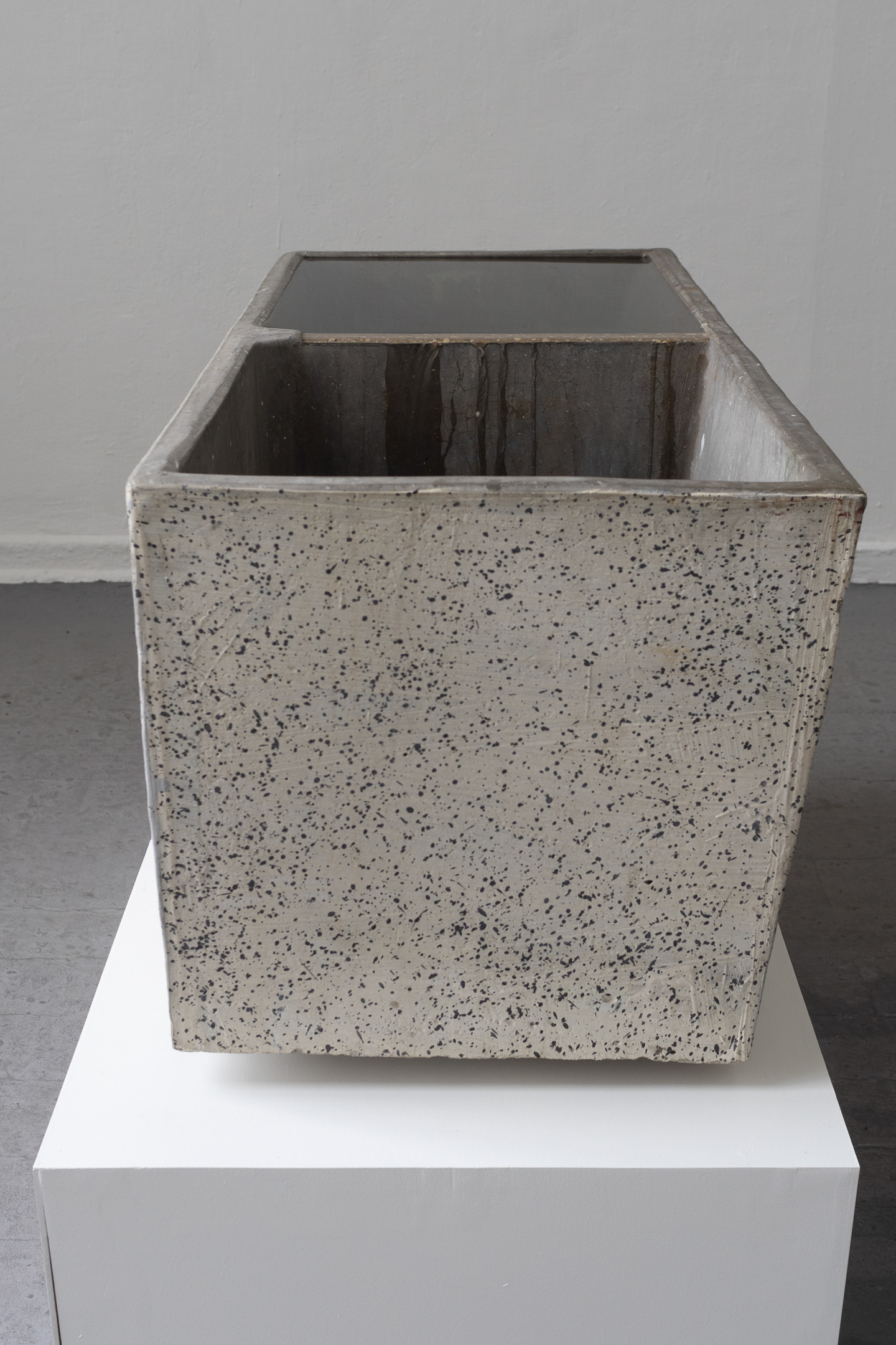 water, concrete sink, wooden pedestal, water pump; ca. 100x140x70cm